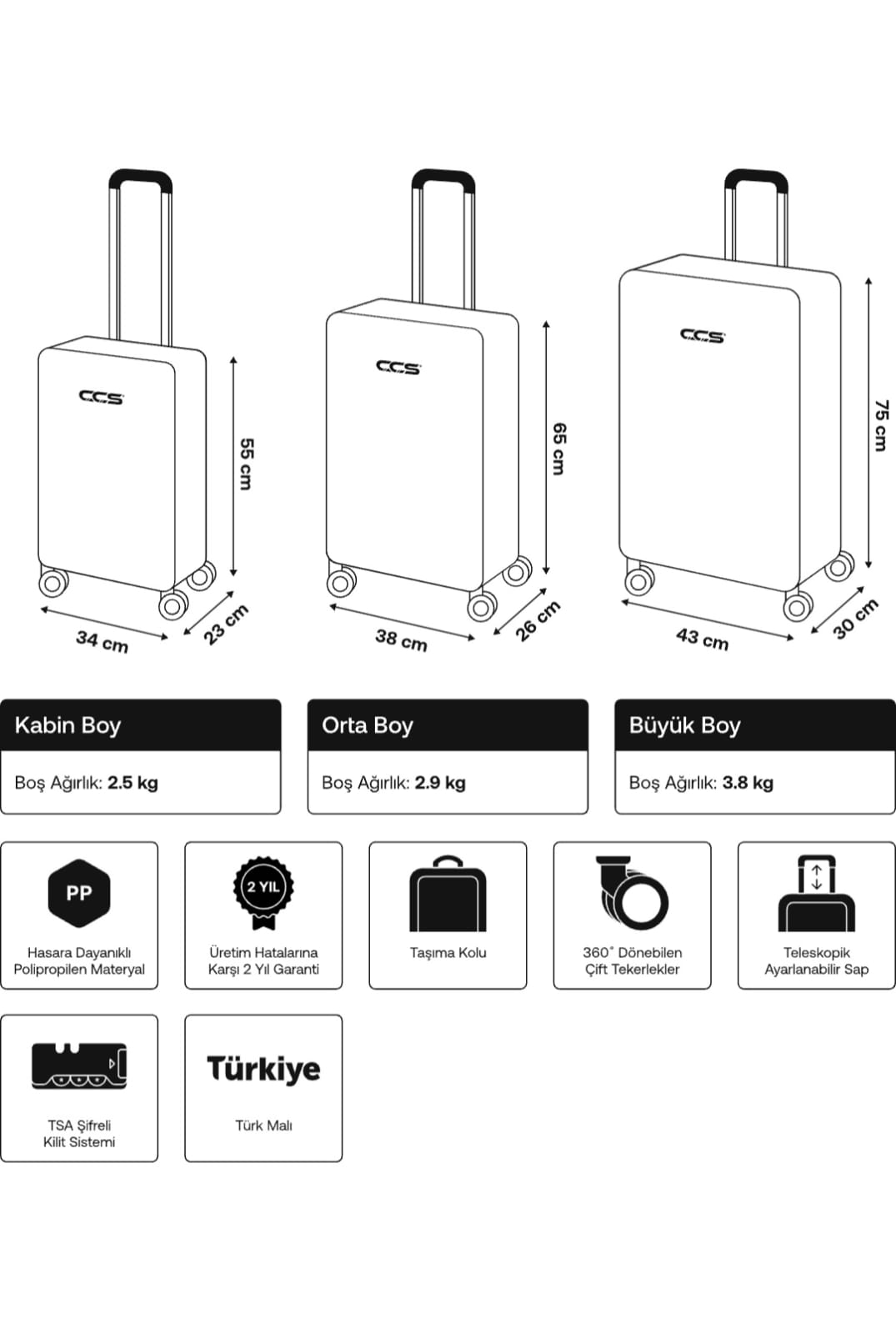 Kalite kontrol şartları belirtilmiş olup maksimum taşıma kapasitesinin üzerinde valizinize eşya koymayınız.